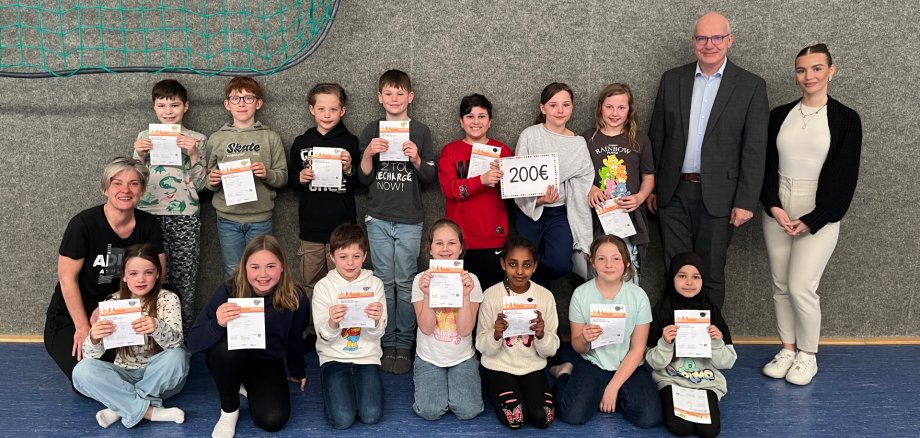 Besonders freute sich die Klasse 4d, die mit den prozentual meisten Sportabzeichen beim Sparkassenwettbewerb aller Gronauer Grundschulen den dritten Platz erreichte.