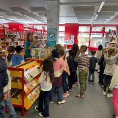 Luokat toivotettiin lämpimästi tervetulleiksi ja heille esiteltiin kirjasto lyhyesti. Sen jälkeen oppilaat saivat tutkia hyllyjä ja etsiä kirjoja.