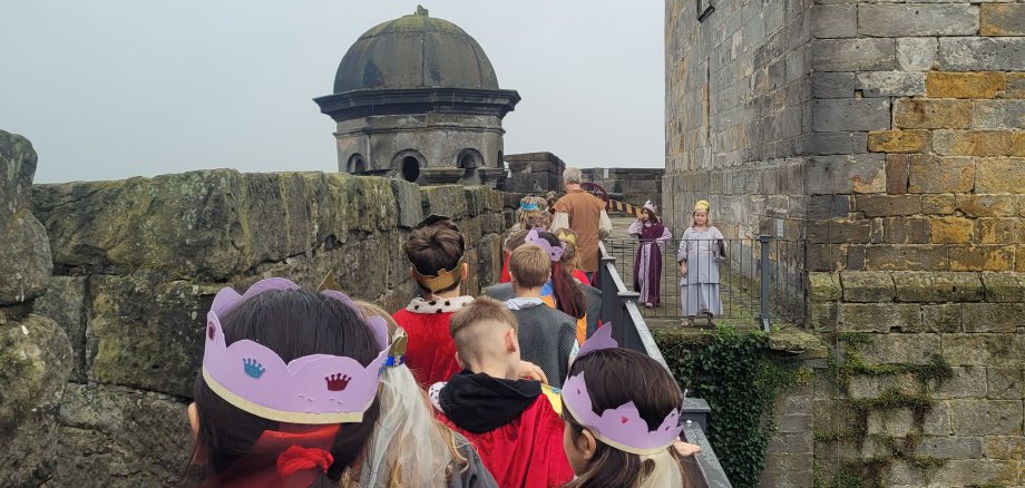 An den beiden Tagen nahmen die Kinder an verschiedenen Aktivitäten im Klassenverband teil. Dazu gehörten das Basteln von Kronen und Rittervisieren sowie Ritterspiele auf dem Bolzplatz, inklusive Bogenschießen. Ein besonderes Highlight war die Burgführung auf Burg Bentheim, die den Kindern einen Einblick in die Geschichte und Architektur der Burg ermöglichte. Die Kinder trugen stolz ihre selbstgebastelten Kronen, Visiere und ausgewählte mittelalterliche Kleidung während der Burgführung. Es war ein zauberhafter Anblick, wie die ganze Gruppe in historischer Tracht die Burg erkundete und sich in vergangene Zeiten versetzte.