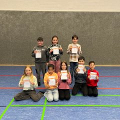 В останній навчальний день перед канікулами учні третього та четвертого класів школи Айлермарк були відзначені за свої спортивні досягнення. Вручення спортивних значків, яке відбулося на спільній зустрічі в спортивному залі, стало свідченням відданості справі юних спортсменів, які блищали своєю витривалістю, силою і майстерністю і змогли досягти спортивного значка. Під оплески своїх однокласників та вчителів, багато дітей були нагороджені за свої видатні досягнення спортивним значком бронзового, срібного або золотого кольору. Особливої уваги заслуговують досягнення двох класів, які не тільки відзначилися своїми індивідуальними успіхами, але й вразили як класний колектив. Класи 4a та 4d були нагороджені спеціальним призом за велику кількість спортивних значків, які вони здобули.